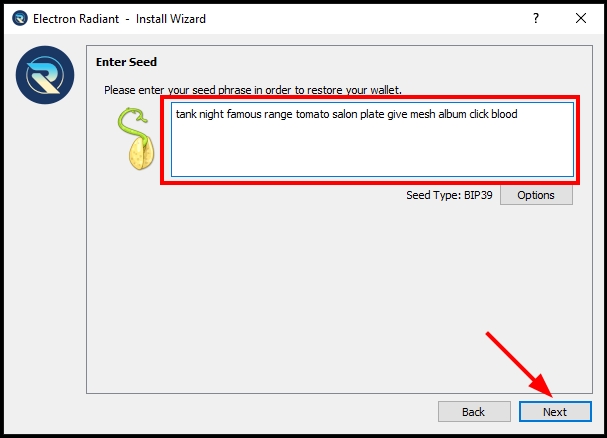 It is very important to have these words stored securely, as without them it is not possible to retrieve the stored funds. More information about BIP39