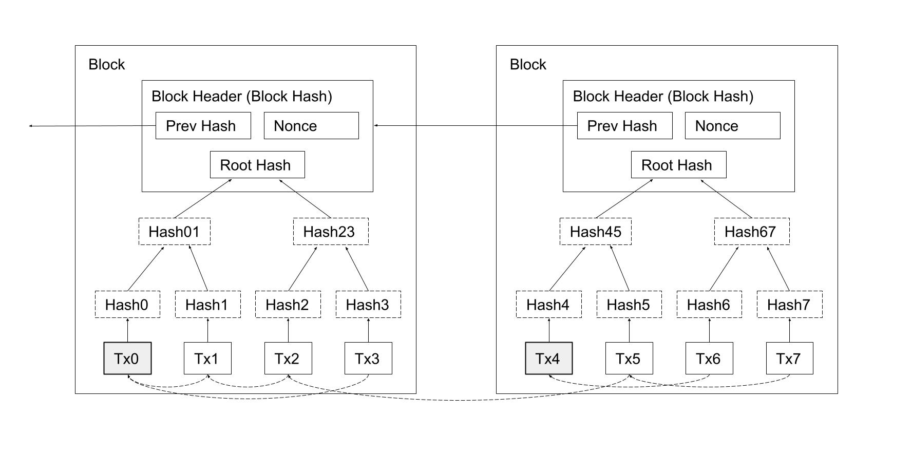 Diagram 2. Block Structure; transactions are organized into a Merkle Tree.\