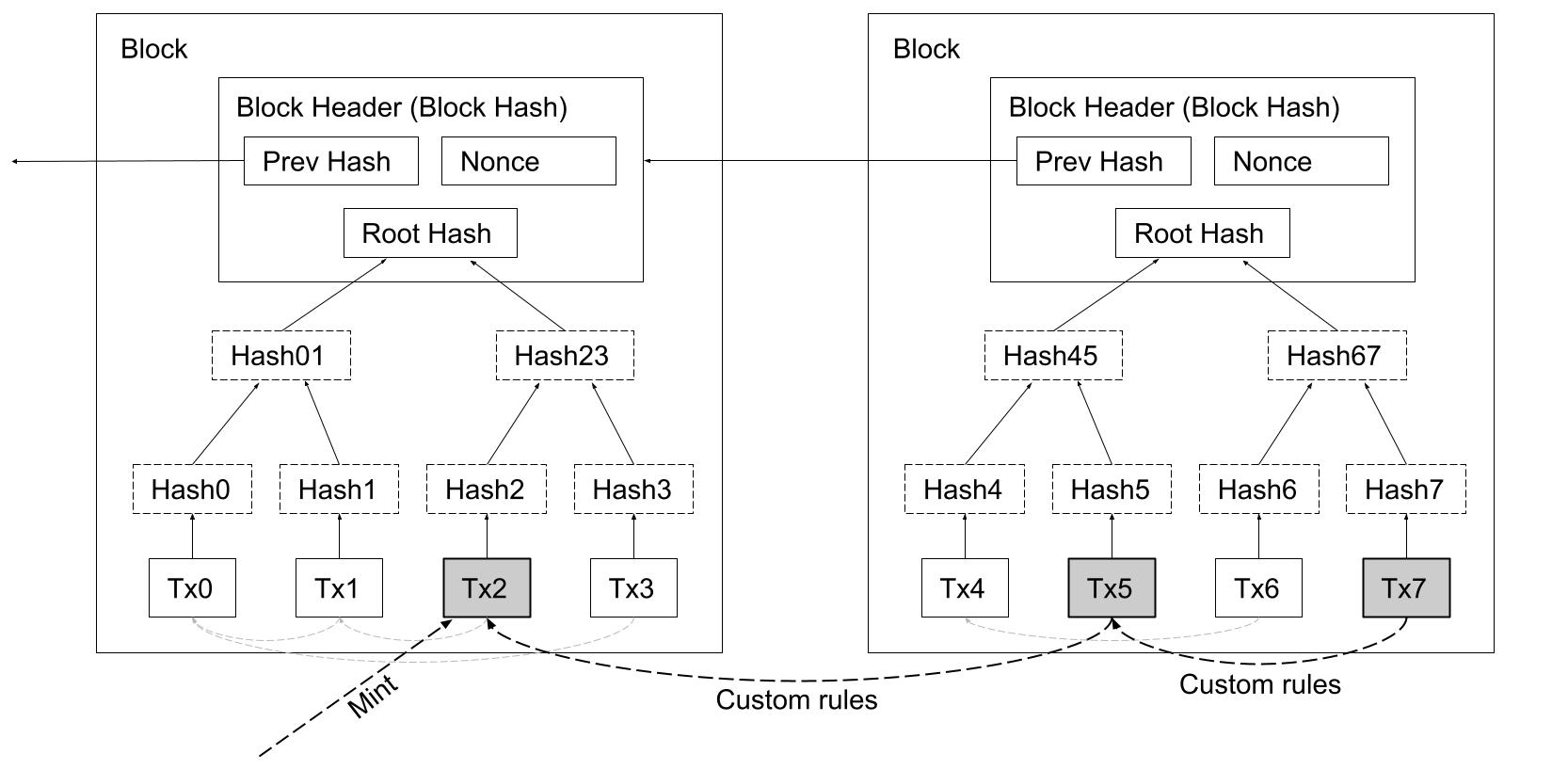 Diagram 4. Custom user-defined coin types are defined from a special mint transaction. A unique identifier is used to classify the coin type.\
