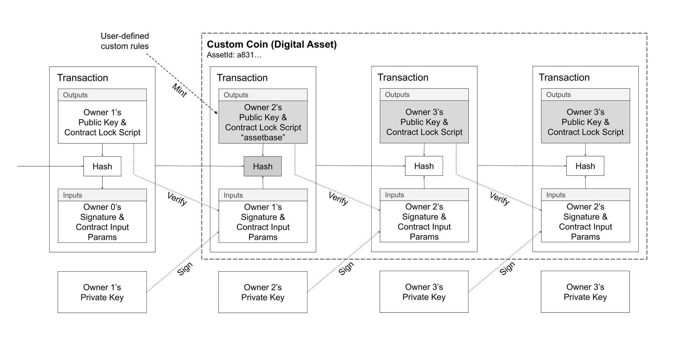 Diagram 3. Transactions representing user-defined coin types — or digital assets.\